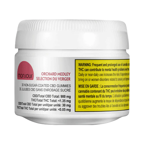Maltitol syrup, Water, Gelatin, Modified coconut oil, Cannabis extract, Citric acid, Malic acid, Natural flavour, Annatto (colour), Anthocyanins (colour), Modified canola oil, Carnauba wax, Alpha-tocopherol. May contain: Milk, Soy, Sulphites.